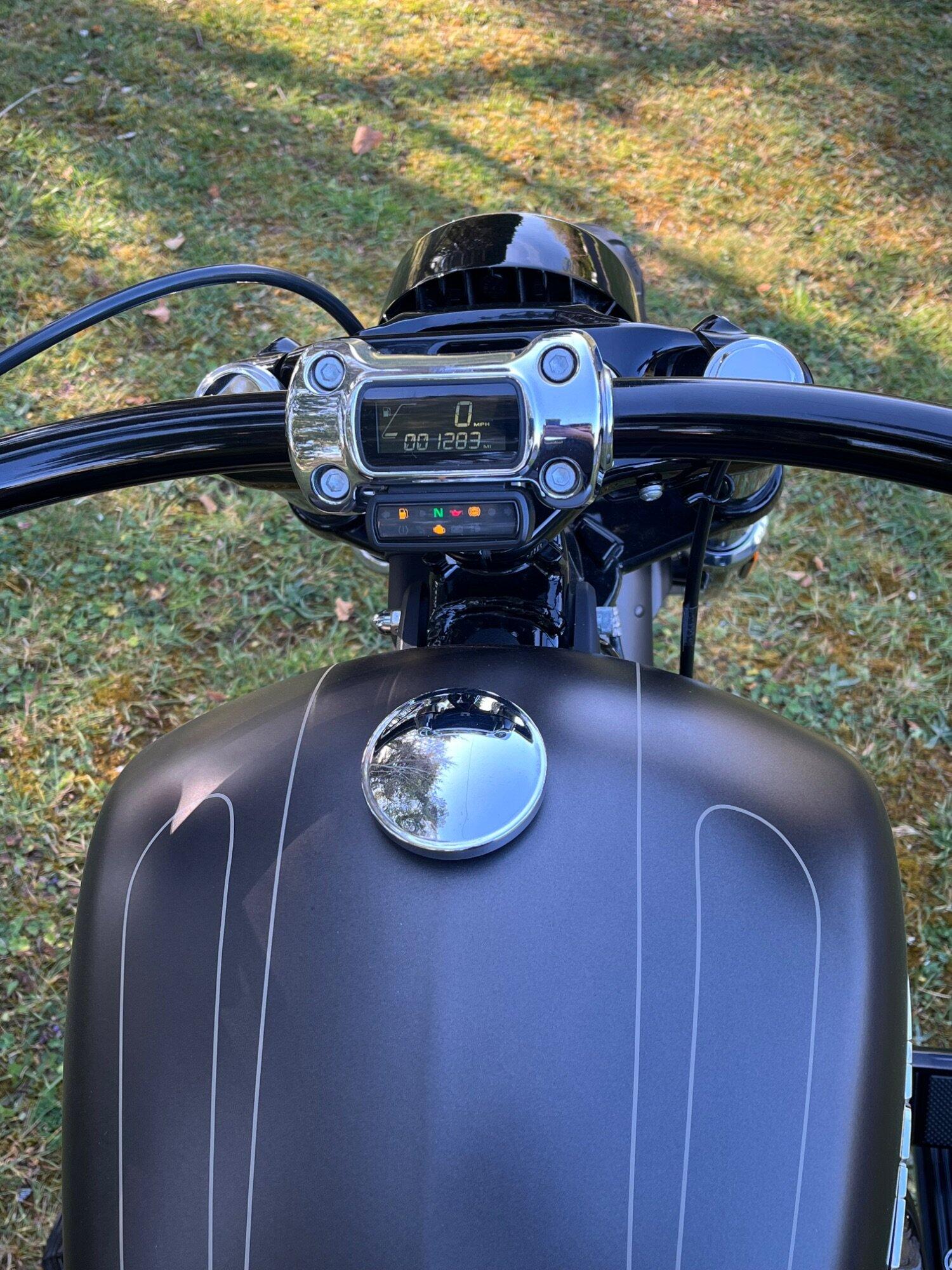 This Harley Davidson boasts an 1868CC engine, perfect for riders who crave a thrilling experience on the road. The bike's custom Matt grey colour is a real head-turner, its sleek design is sure to grab attention.